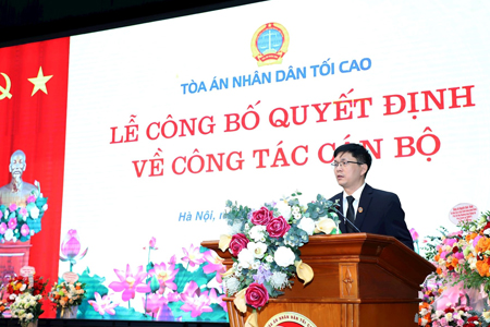 Sáng 30/9, tại Học viện Tòa án (HVTA), TANDTC tổ chức Lễ công bố Quyết định của Chánh án TANDTC về công tác cán bộ. Đồng chí Nguyễn Quốc Đoàn, Ủy viên Ban Chấp hành Trung ương Đảng, Phó Bí thư Thường trực Đảng ủy, Phó Chánh án TANDTC dự và trao quyết định. Dự buổi lễ còn có đại diện lãnh đạo các đơn vị thuộc TANDTC, Tòa án Quân sự Trung ương. Tham dự buổi lễ còn có các đồng chí trong tập thể lãnh đạo, viên chức và người lao động HVTA.