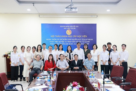 Thực hiện Quyết định số 267/QĐ-HVTA ngày 11/10/2024 của Giám đốc Học viện Toà án về việc phê duyệt Hội thảo khoa học cấp Học viện, chiều ngày 26/8/2025, Học viện Toà án (HVTA) tổ chức thành công Hội thảo khoa học với chủ đề: “Hoàn thiện cơ chế kiểm soát quyền lực của cơ quan thực hiện quyền tư pháp đối với các cơ quan thực hiện quyền lập pháp, quyền hành pháp”.