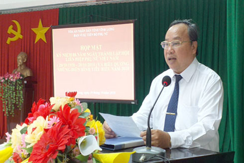 Tại buổi họp mặt, các đại biểu đã cùng nhau ôn lại truyền thống 88 năm ngày thành lập Hội Liên hiệp phụ nữ Việt Nam và biểu dương, khen thưởng các chị em phụ nữ tiêu biểu của TAND hai cấp tỉnh Vĩnh Long.
