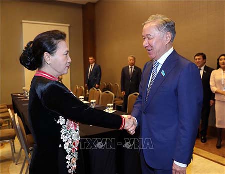 Hội kiến với Chủ tịch Hạ viện Cộng hòa Kazakhstan Nurlan Z.Nigmatulin bên lề Hội nghị Chủ tịch Quốc hội các nước Á Âu lần thứ 3, Chủ tịch Quốc hội Nguyễn Thị Kim Ngân đề nghị, hai bên chia sẻ kinh nghiệm về thu hút đầu tư nước ngoài và tích cực thúc đẩy quan hệ kinh tế, thương mại, đầu tư song phương.